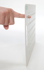 | 「フィンガーボード」の素材には、ポリプロピレン シート(樹脂板)を使用しています。 ポリプロピレンシートは、軽くて衝撃に強く剛性・耐水性・耐薬品性に優れ、手触りが滑らかで使い易い 素材です。落としても割れたり欠けたりはしません。 また、ポリプロピレンは有害物質を一切含んでいない為、食器容器としても使用できるなど、衛生的で 無害な環境に優しい大手樹脂メーカーの製品です。 |